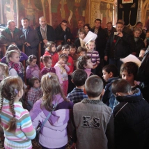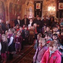 În încheiere gazdele au fost colindate cu cântece din bătrâni, cu grijă păstrate şi valorificate în repertoriul copiilor de către doamnele educatoare. Părintele Adrian Roman a mulţumit copiilor, cadrelor didactice şi părinţilor, daruindu-le celor mici câte un dar dulce şi iconiţe de cu seară pregătite de Moş Nicolae.
