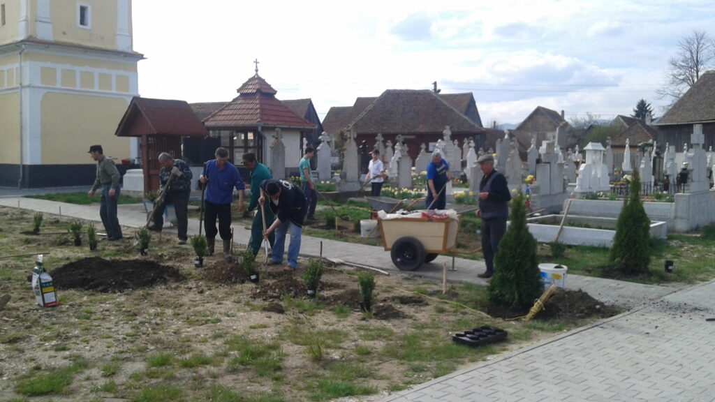 Astfel, cu implicarea voluntarilor, a comitetului și consiliului parohial, au fost plantate conifere, trandafiri, plante ornamentale, s-a însămânțat iarbă. De asemenea, a fost montată o pompă submersibilă pentru irigarea și întreținerea spațiilor verzi.